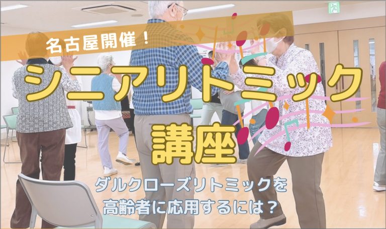 6月29日(日)に名古屋でシニアリトミック講座を開催いたします。はじめてシニアリトミックを学ぶ方、もう一度基礎から学び直したい方、ダルクローズリトミックを高齢者に応用したい方、どなたでもご参加いただけます。高齢者に興味の […] -